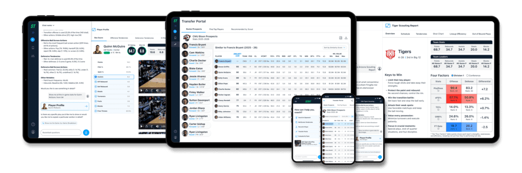 The announcement comes as the transfer portal reshapes 60 percent of Division I men’s rosters and 30% of women’s rosters annually, compressing what was once a complex recruiting process into a window measured in weeks. For a coaching staff relying on manual film review, fragmented stat databases, and anecdotal NIL market data, the portal has become as much a liability as an opportunity.
